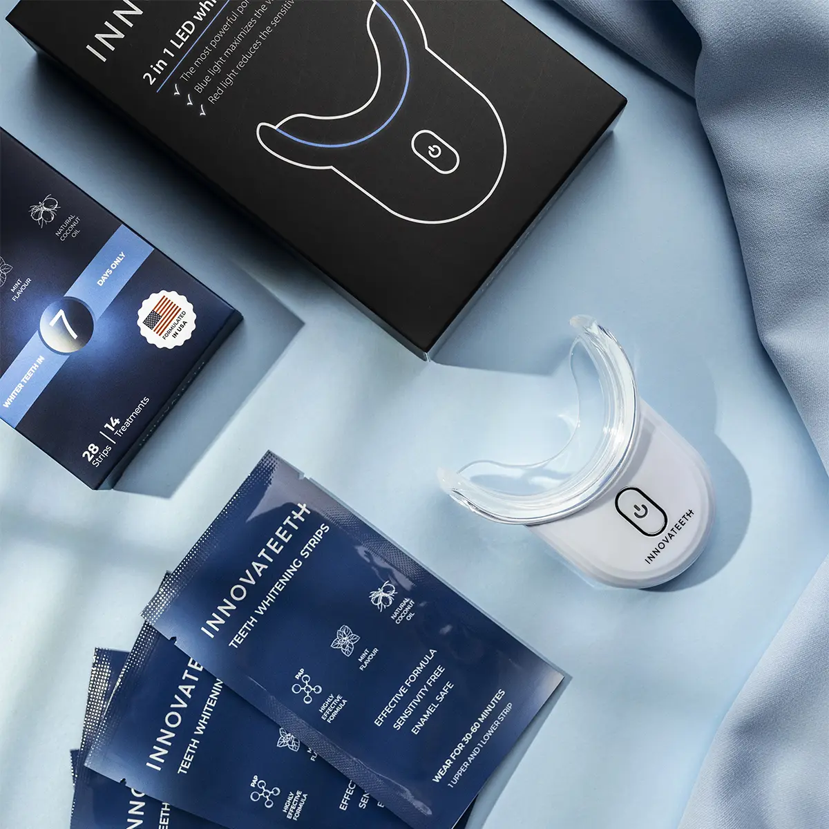 Set INNOVATEETH™ Światło LED + Taśmy wybielające